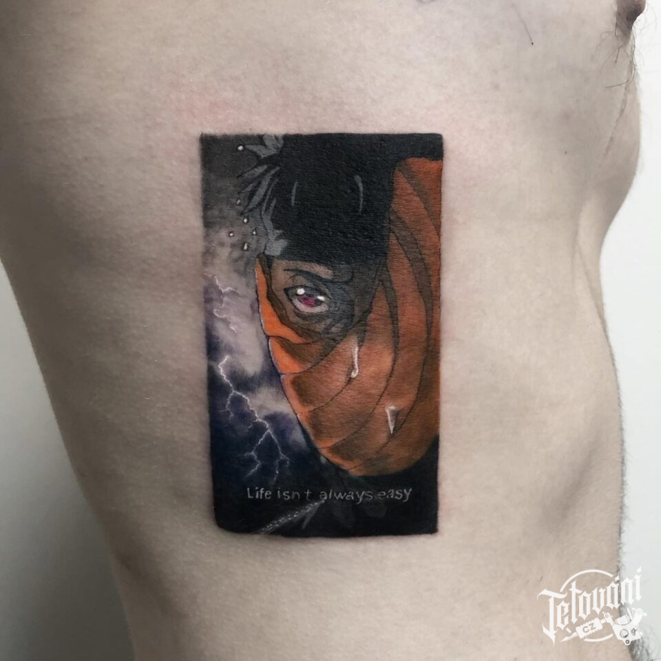 Tetování z filmů a pohádek, anime, Naruto, Obito Uchiha na žebrech
