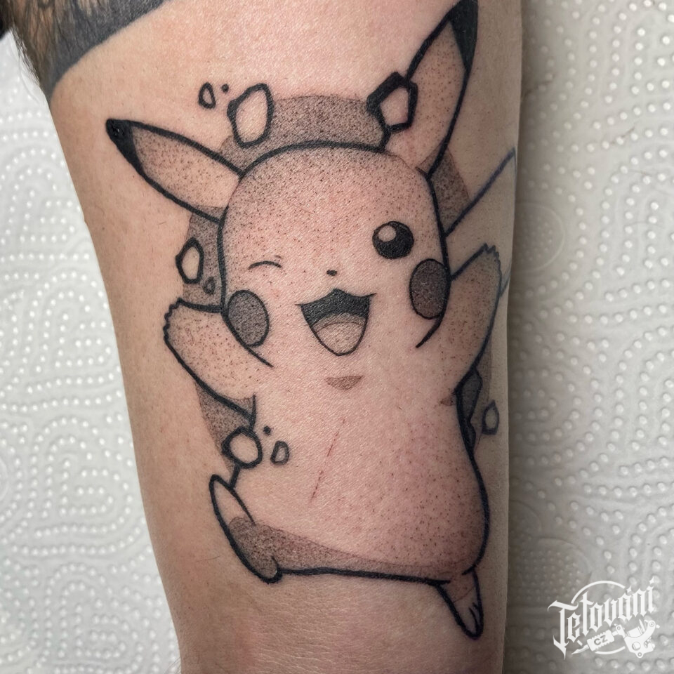 Tetování z filmů a pohádek anime Pichatchu na stehno