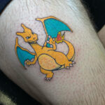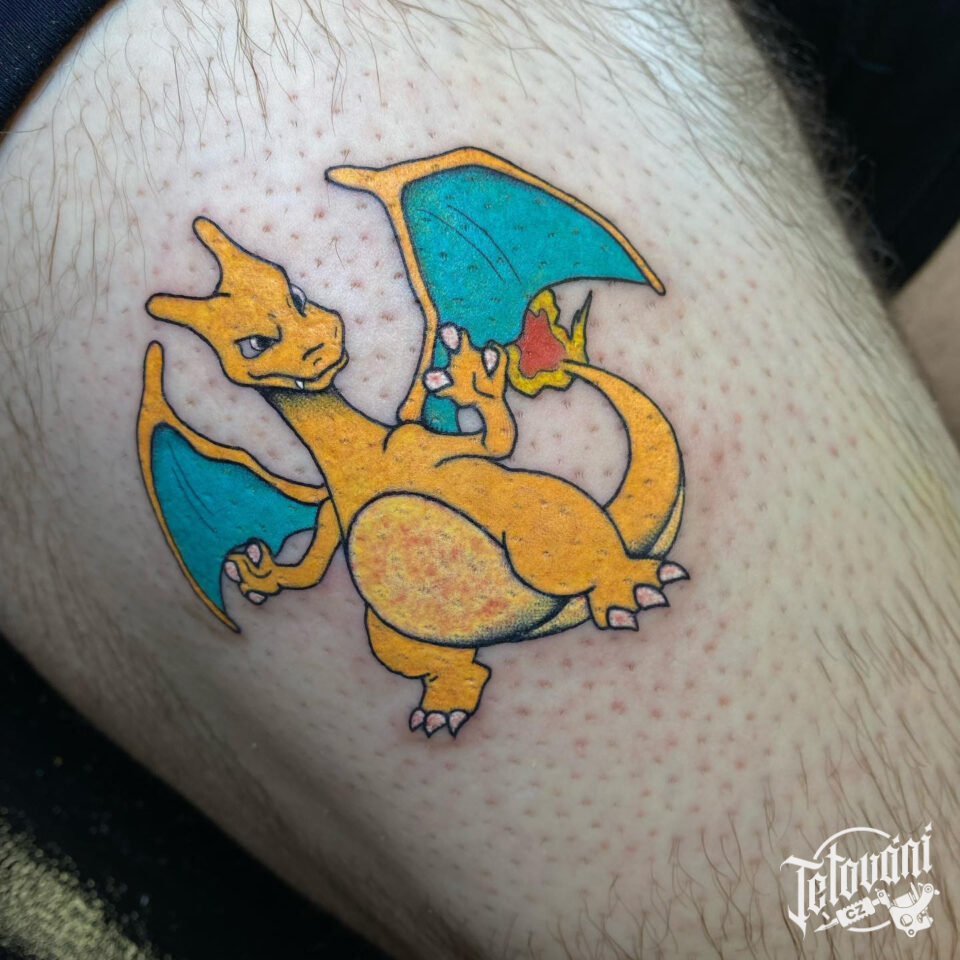 Tetování z filmů a pohádek anime, pokémon na stehně