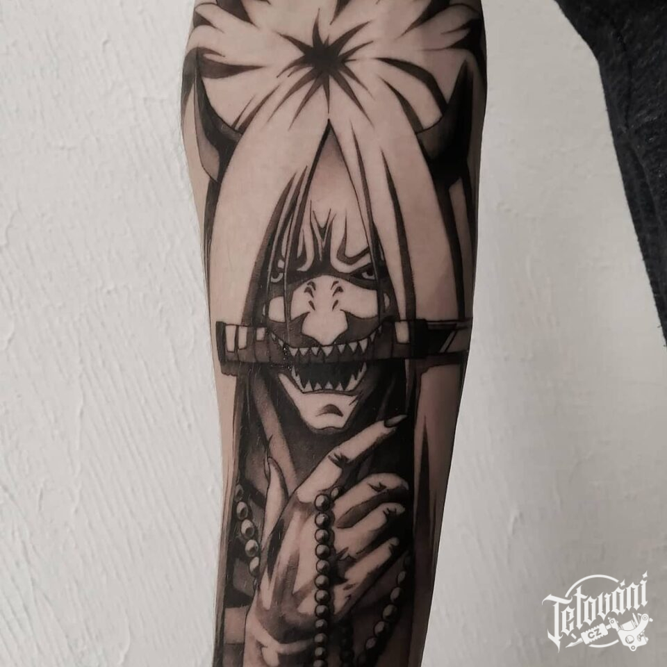 Tetování z filmů a pohádek, anime portrét na předloktí