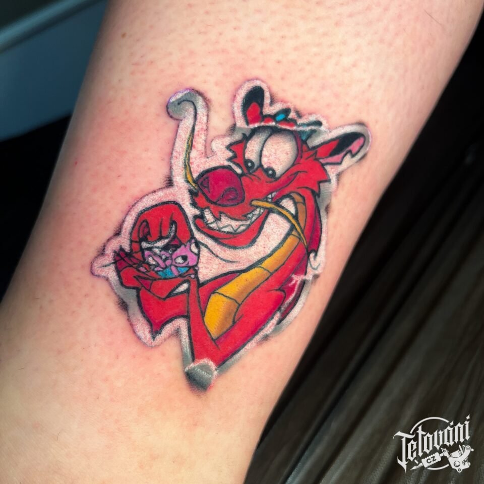 Tetování z filmů a pohádek anime, postavička mýtické bytosti drak na rameno