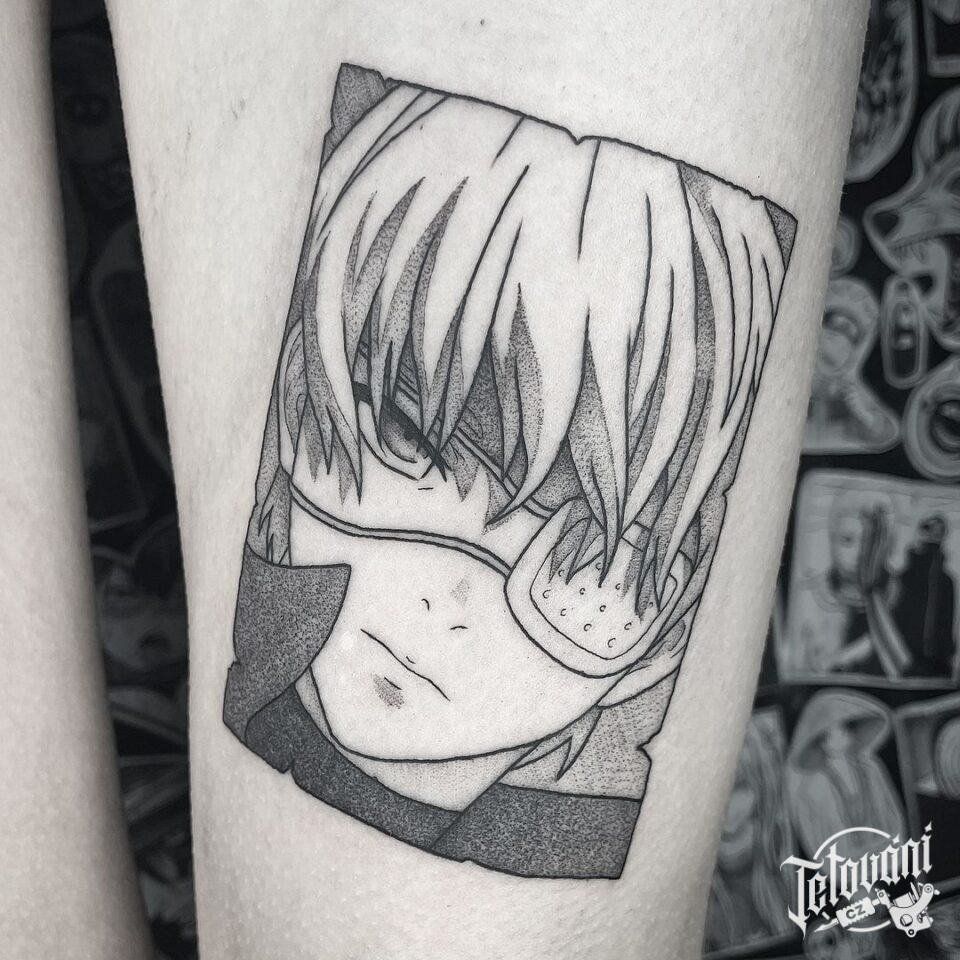 Tetování z filmů a pohádek, anime postavičkab Kaneki Ken na stehno