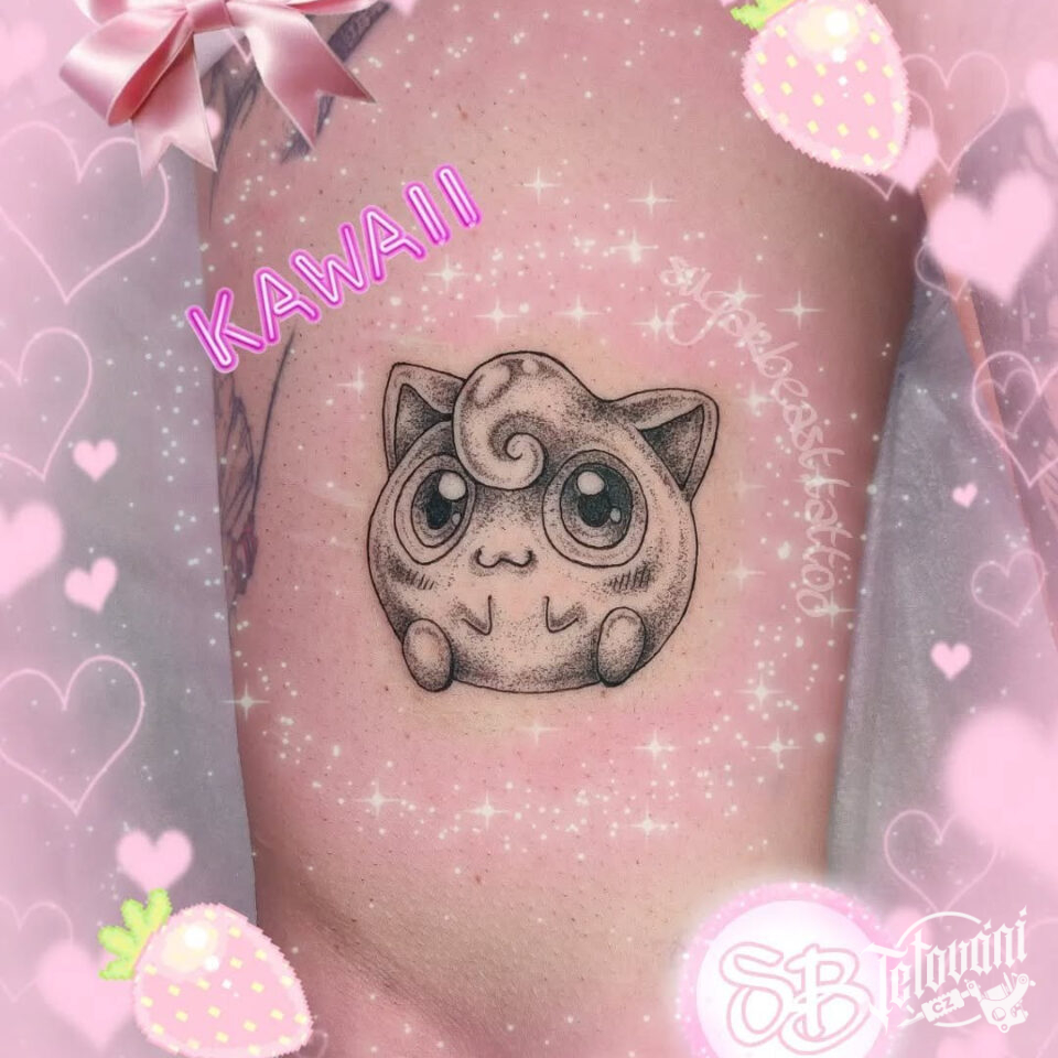 Tetování z filmů a pohádek Pokémon, anime postavička na stehno