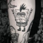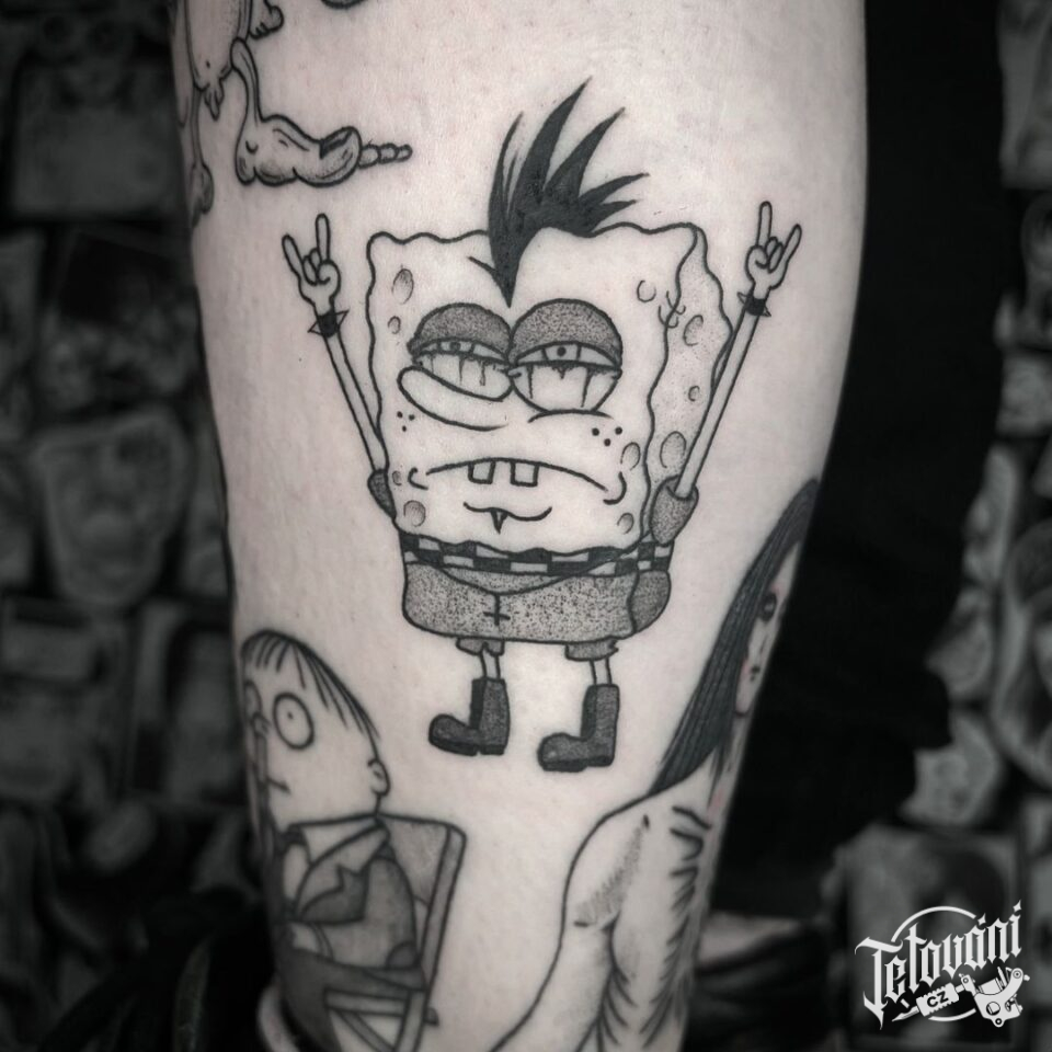 Tetování z filmů a pohádek anime postavička SpongeBob na lýtko