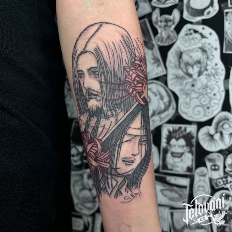 Tetování z filmů a pohádek anime postavičky Eren and Zeke Yeager na předloktí