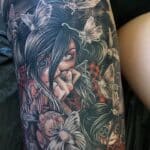 Tetování z filmů a pohádek anime postavičky na stehno