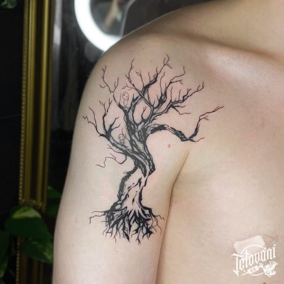 Tetování z filmů a pohádek anime, strom na rameni