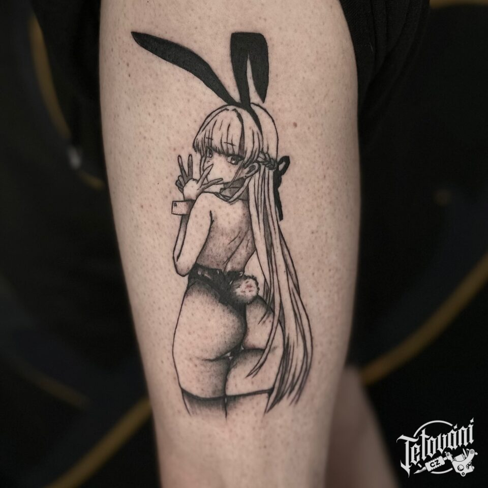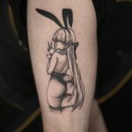 Tetování z filmů a pohádek anime, žena na boku stehna