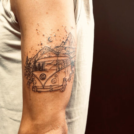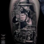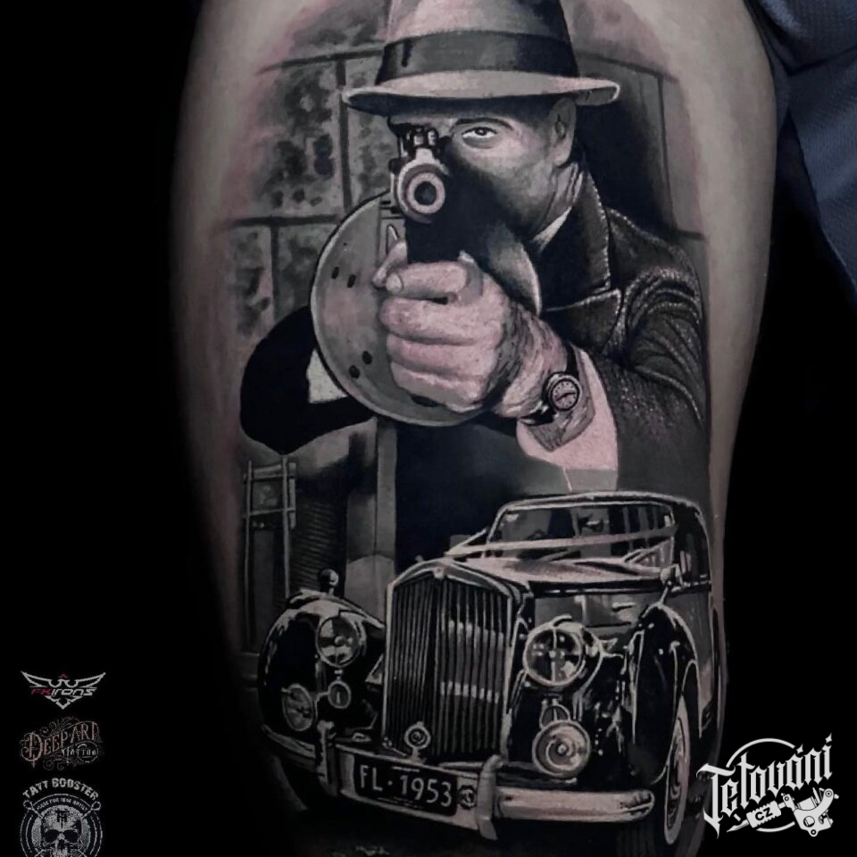 Tetování z filmů a pohádek, auto a gangster na stehně