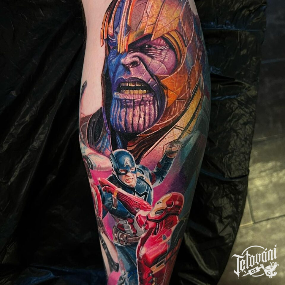 Tetování z filmů a pohádek, Avengers a Marvel, portrét na lýtko