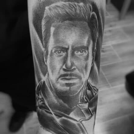 Tetování z filmů a pohádek, Avengers, portrét Iron man na rameni