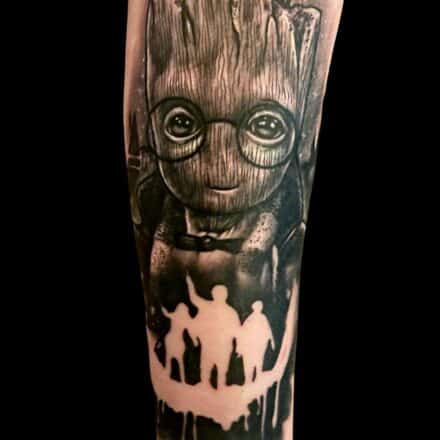 Tetování z filmů a pohádek Avengers, postava Thanos, portrét na hřbet ruky