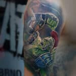 Tetování z filmů a pohádek Avengers, postavička Hulk, jako sparťanský bojovník na rameno