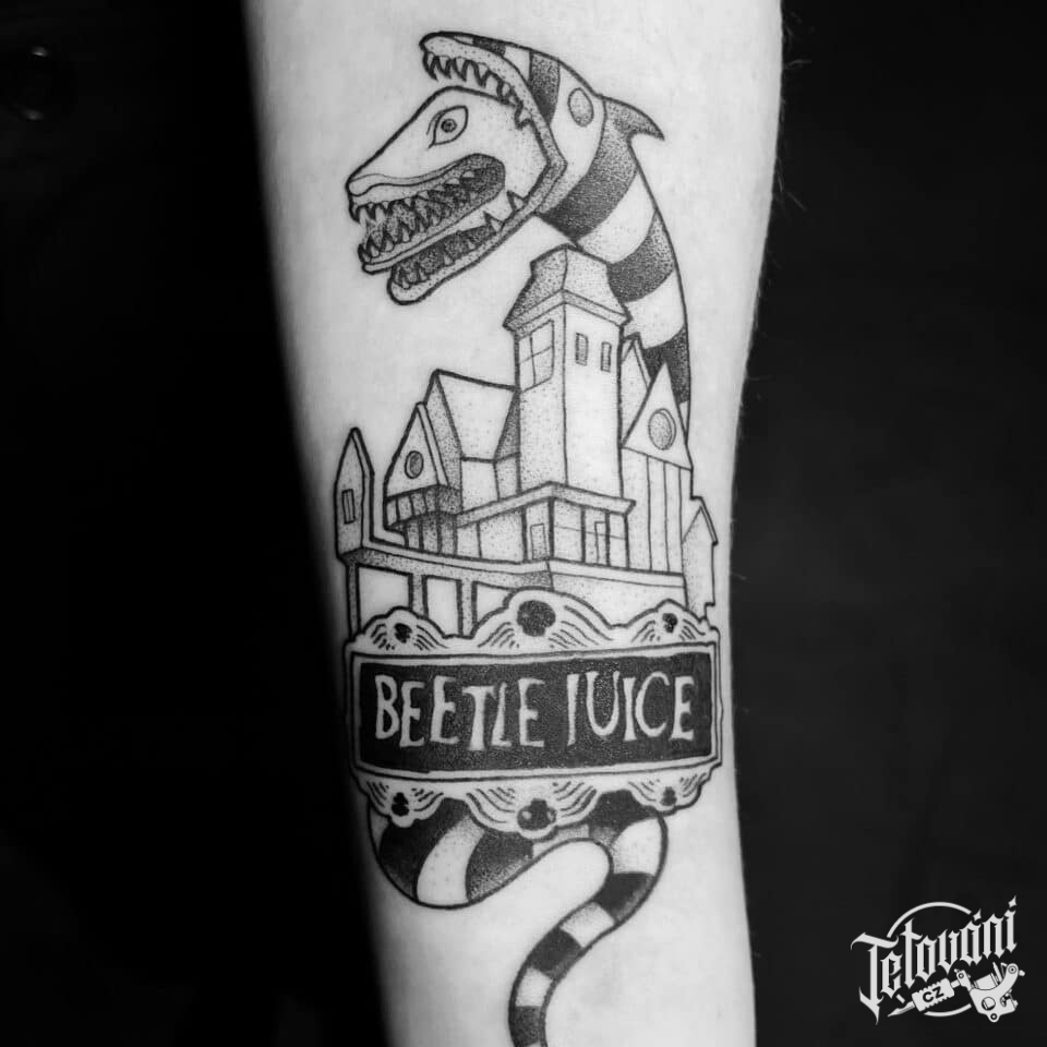 Tetování z filmů a pohádek Beetle Juice na předloktí