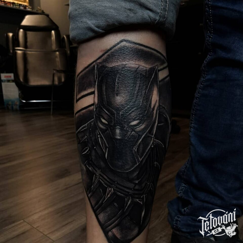 Tetování z filmů a pohádek Blackpanther od Marvel na holeň