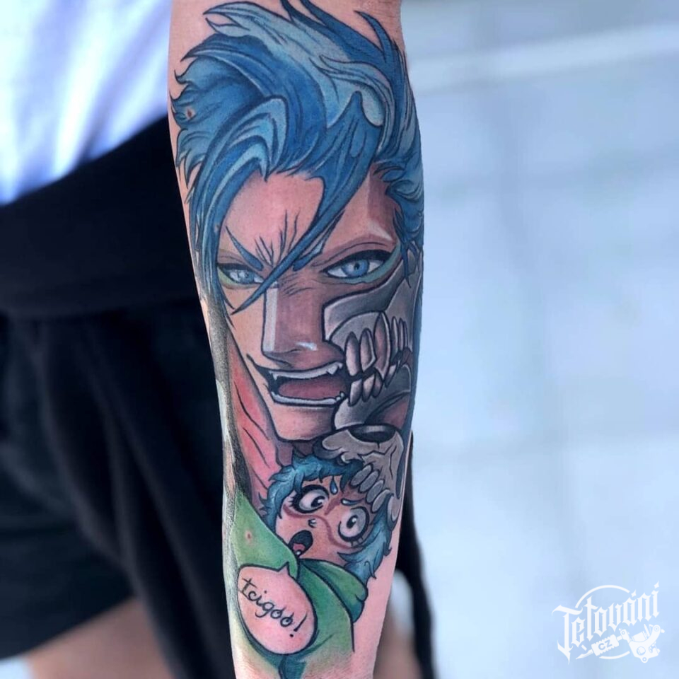 Tetování z filmů a pohádek Bleach anime postavičky na předloktí