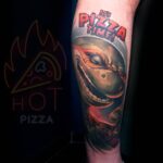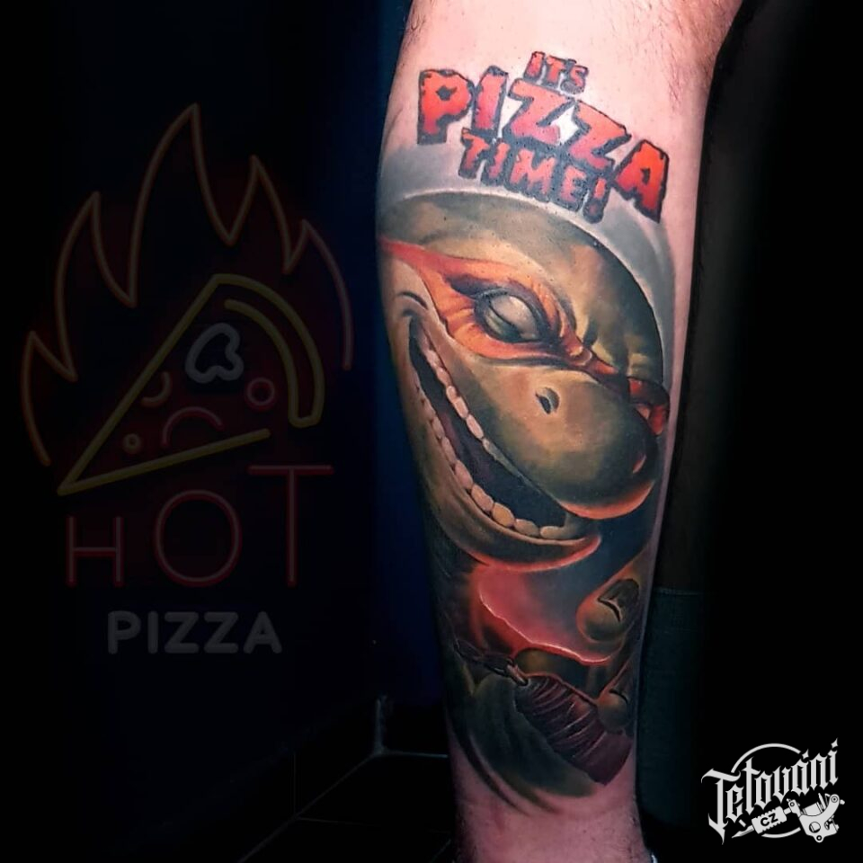 Tetování z filmů a pohádek, bojovník, želva a nápis na předloktí