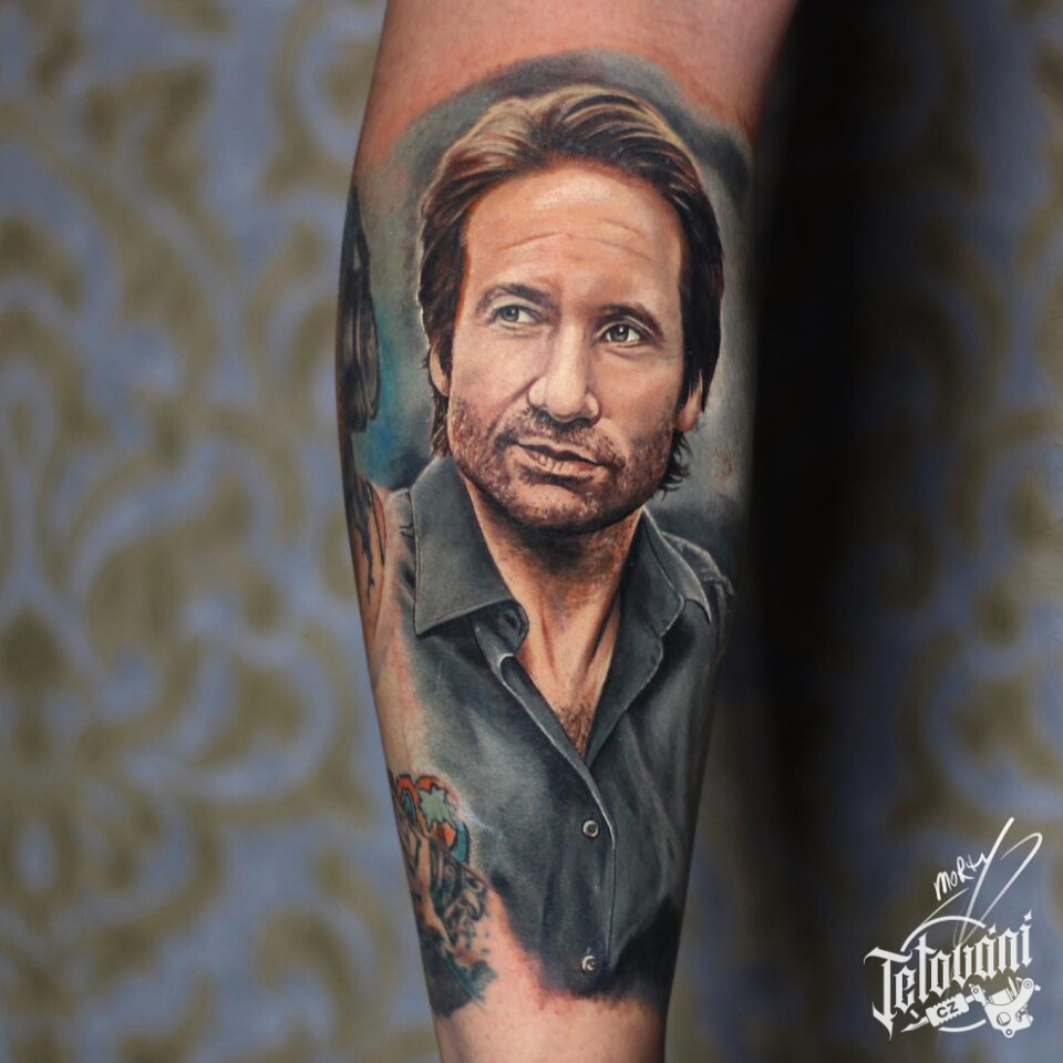 Tetování z filmů a pohádek Californication´s Hank, portrét na předloktí
