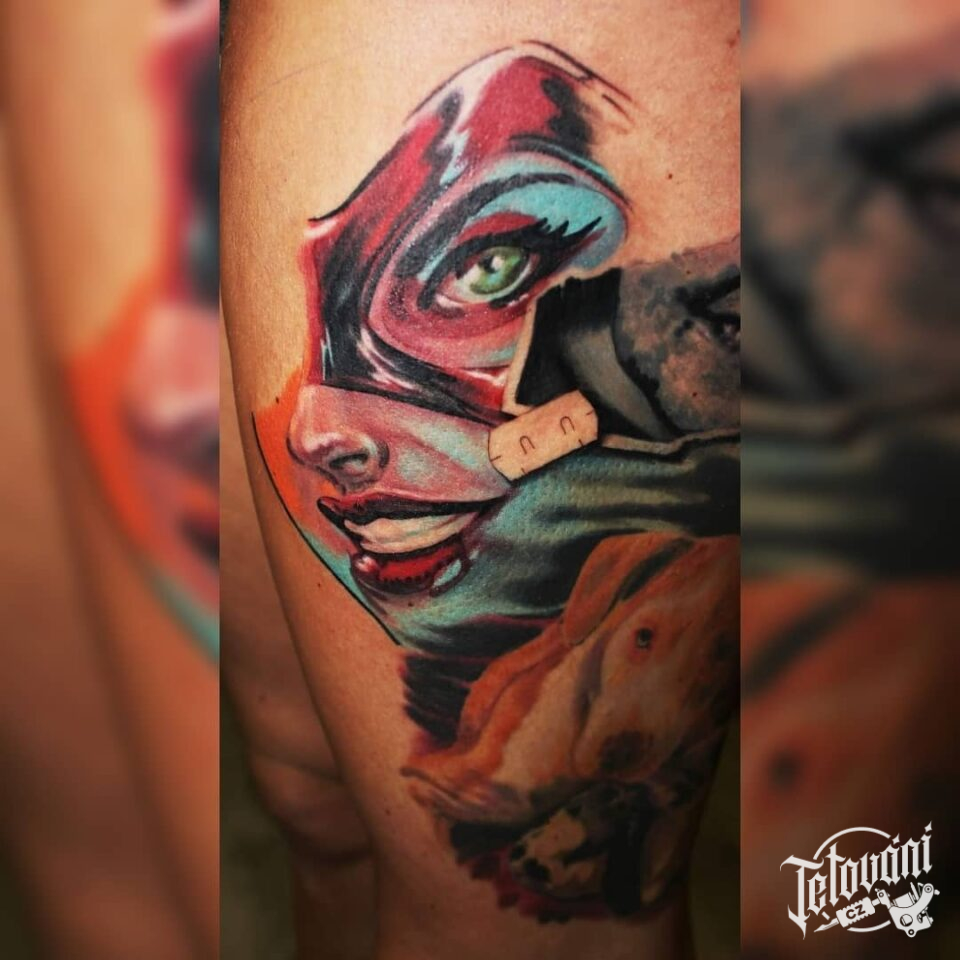 Tetování z filmů a pohádek Catwoman na bok stehna