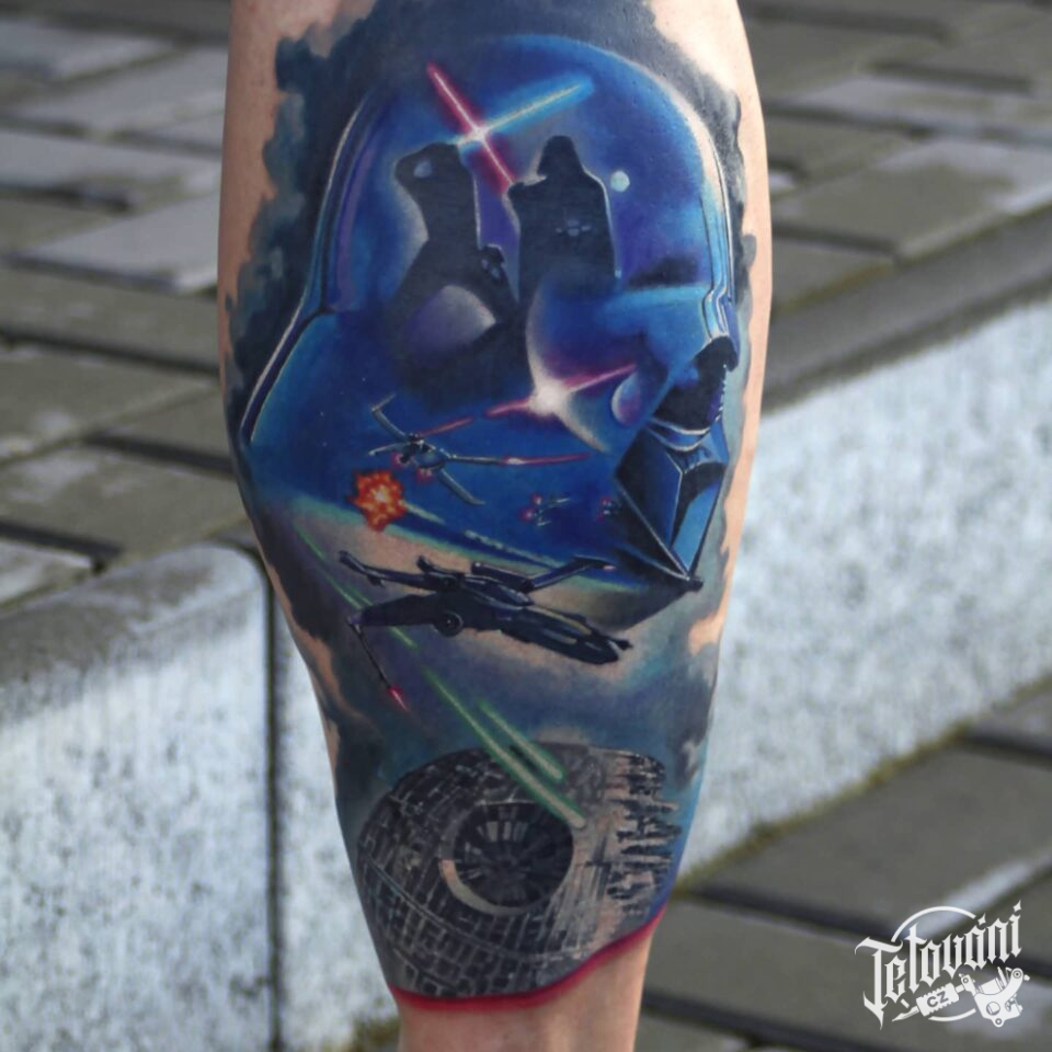 Tetování z filmů a pohádek Darth Vader na holeň