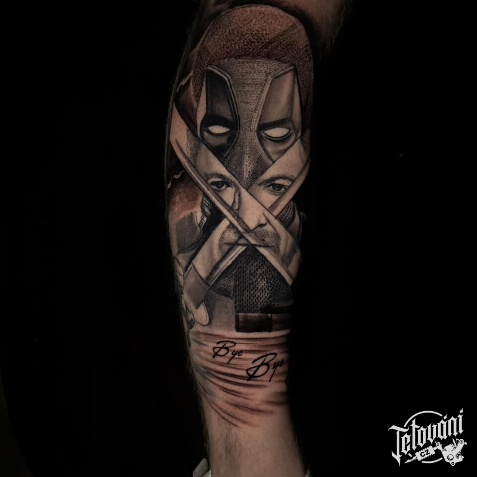 Tetování z filmů a pohádek Dead pool na lýtko