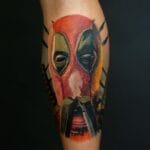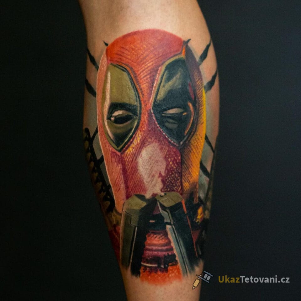 Tetování z filmů a pohádek Dead Pool na lýtko