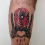 Tetování z filmů a pohádek Dead Pool s meči, srdce na lýtko