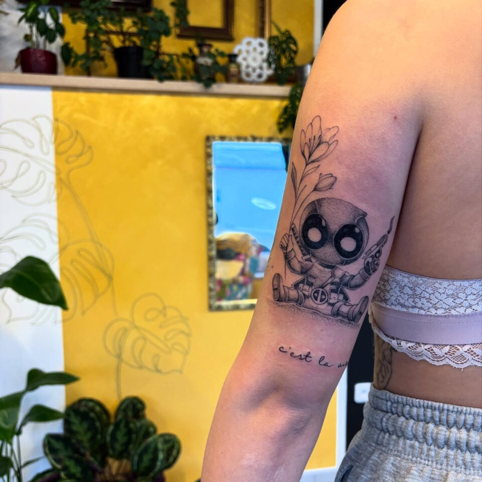Tetování z filmů a pohádek Deadpool, postavička na rameno