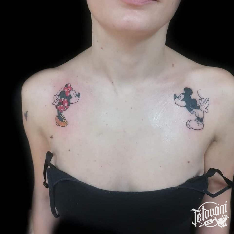 Tetování z filmů a pohádek, Disney, Mickey mouse a Minnie na hrudi