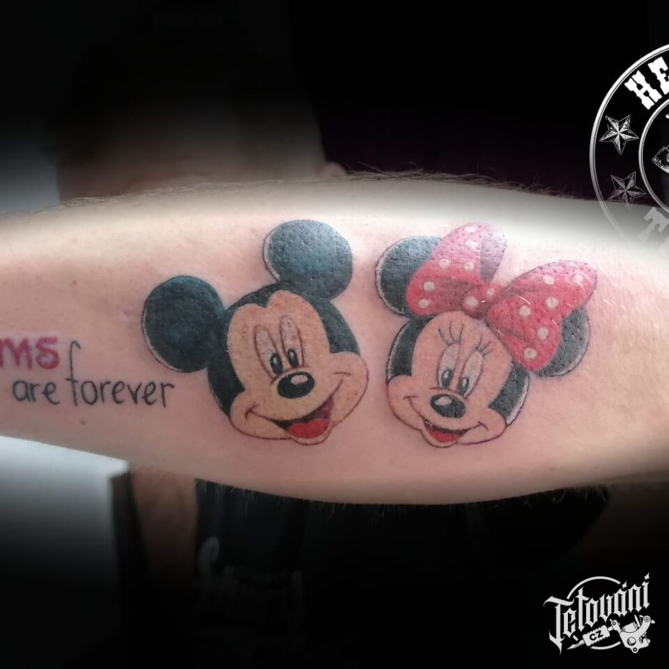 Tetování z filmů a pohádek, Disney, Mickey Mouse a Minnie na předloktí