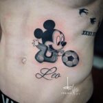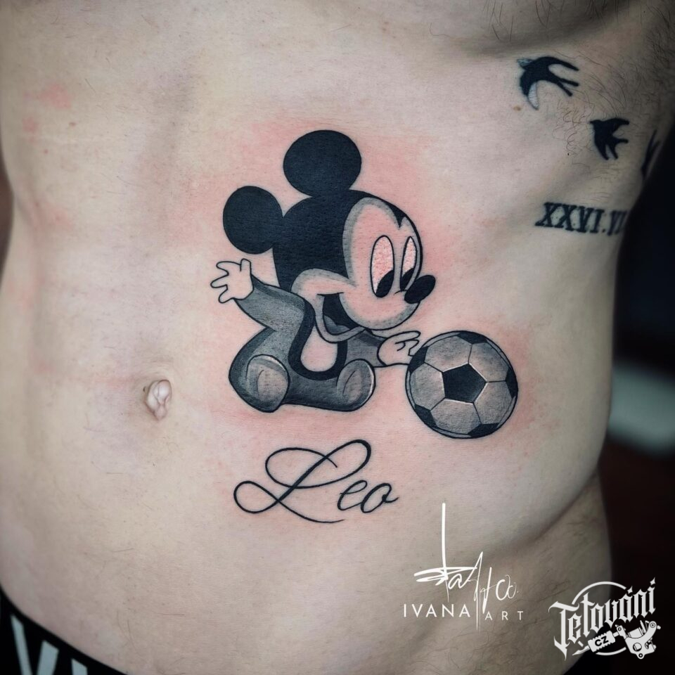 Tetování z filmů a pohádek, Disney, nápis, Mickey mouse se jménem na břichu