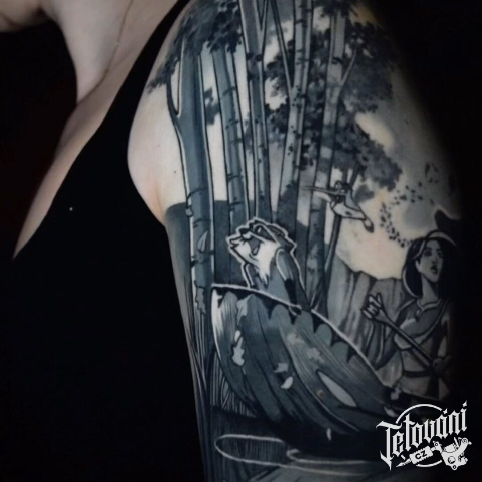 Tetování z filmů a pohádek Disney Pokahontas na rameni