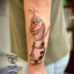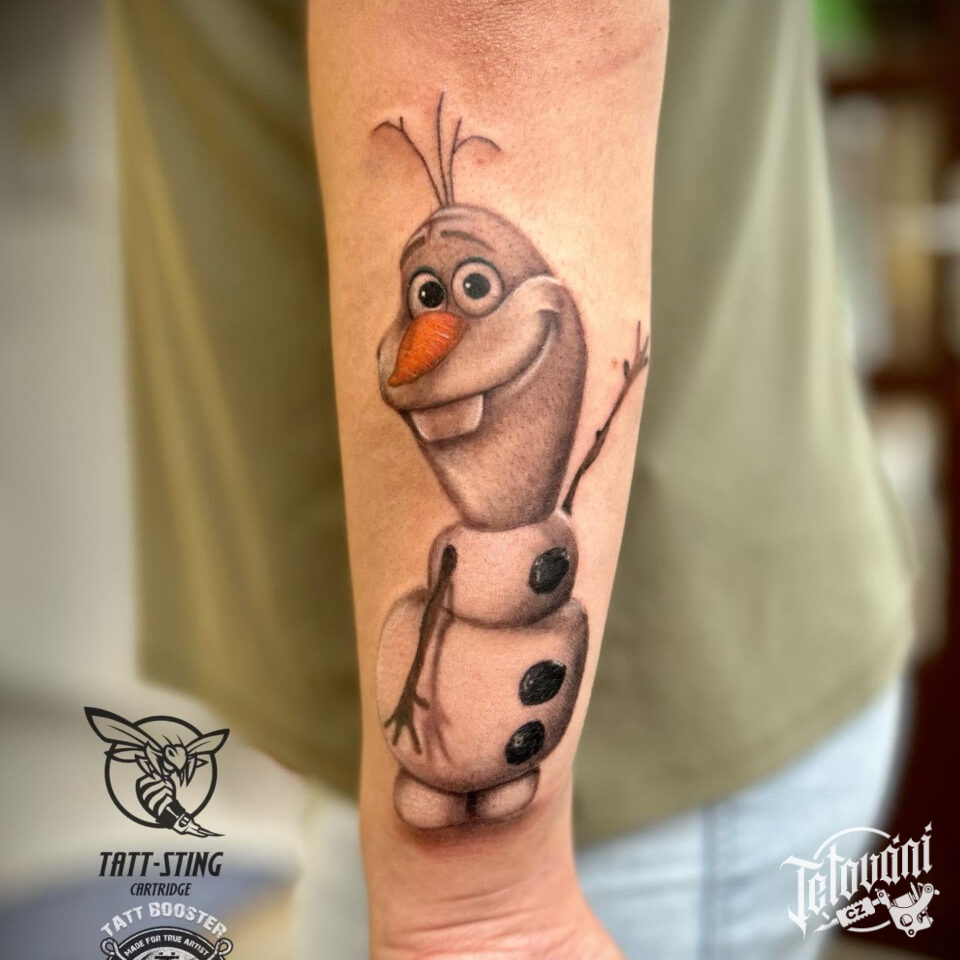 Tetování z filmů a pohádek Disney, postavička Olaf z ledového králoství na předloktí