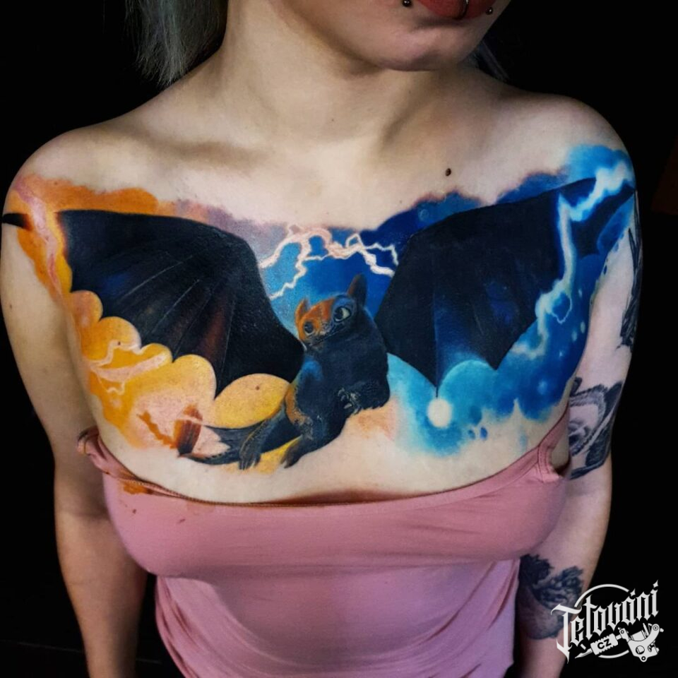 Tetování z filmů a pohádek, drak na hrudník