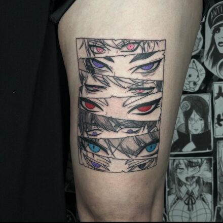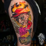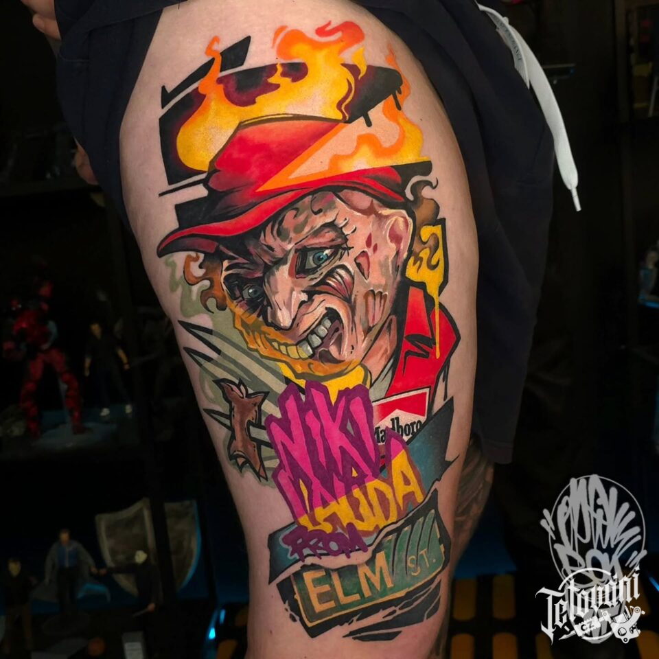 Tetování z filmů a pohádek Freddy Krueger, nápisy na bok stehna