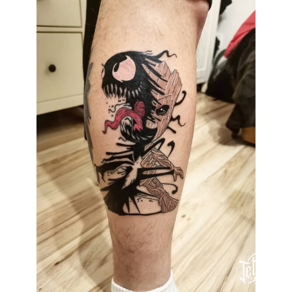 Tetování z filmů a pohádek, Groot a Venom na lýtku