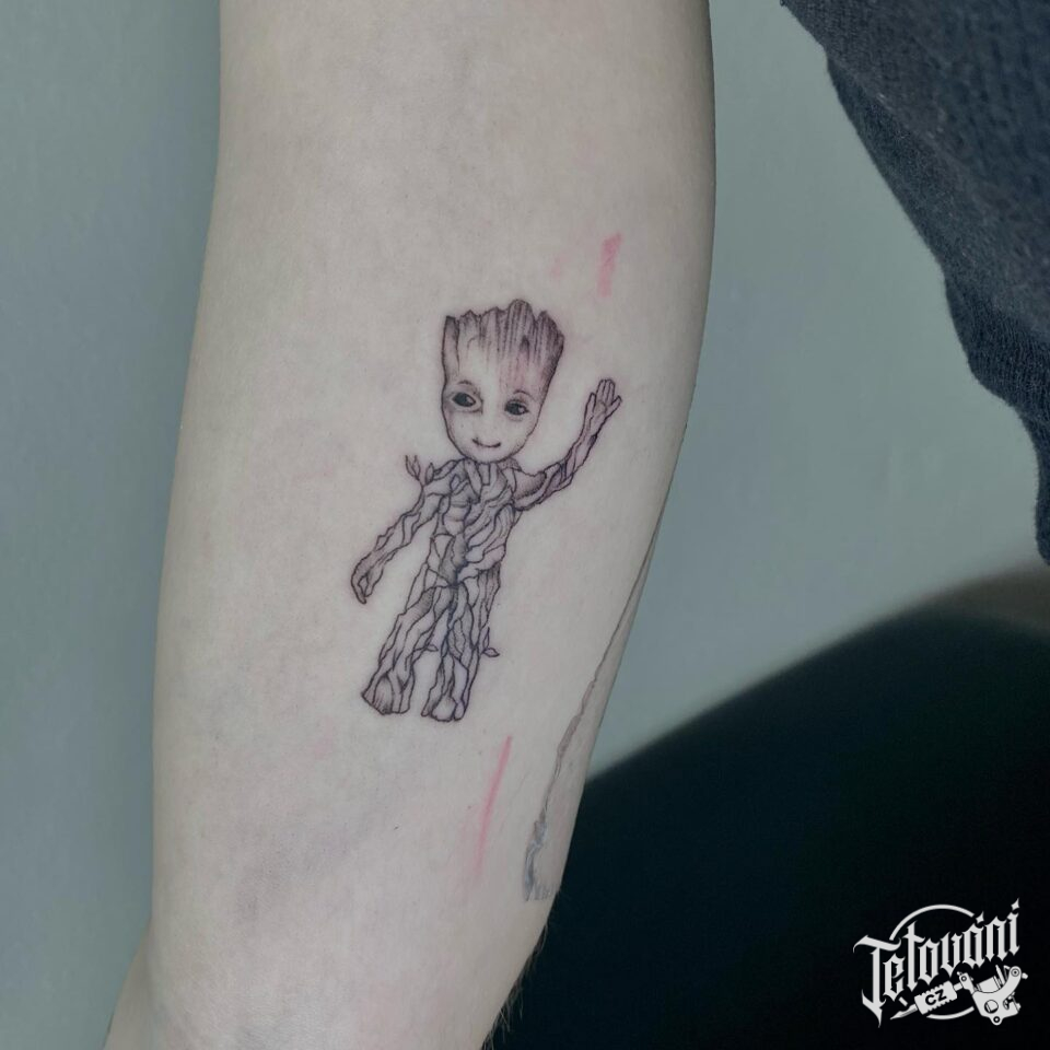 Tetování z filmů a pohádek Groot, Marvel a Avengers na předloktí