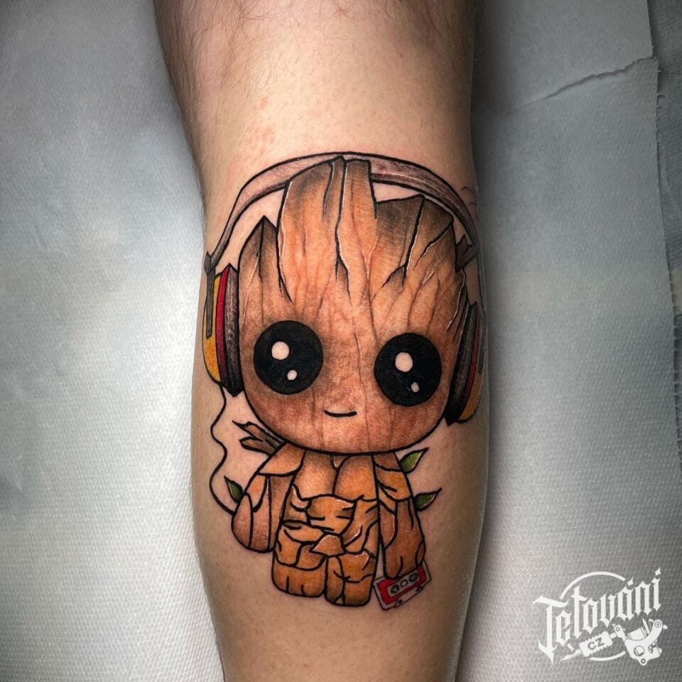 Tetování z filmů a pohádek Groot na lýtko
