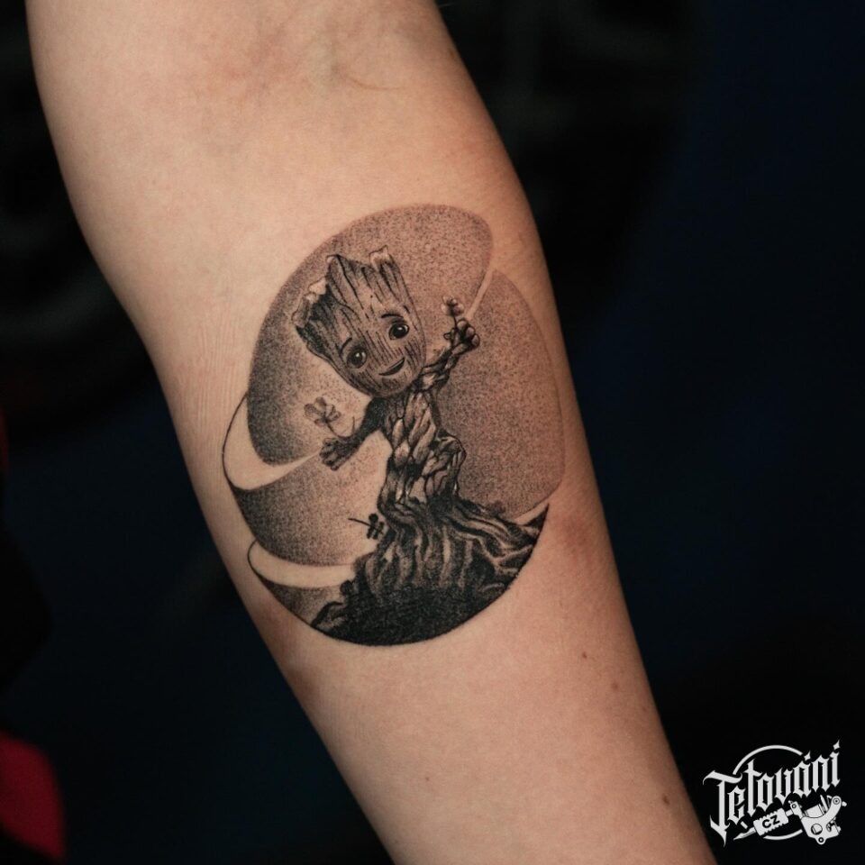 Tetování z filmů a pohádek Groot na předloktí