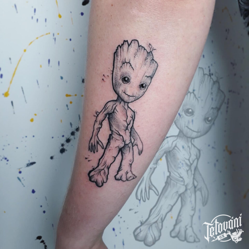 Tetování z filmů a pohádek Groot na předloktí