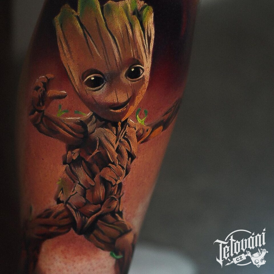 Tetování z filmů a pohádek Groot na předloktí