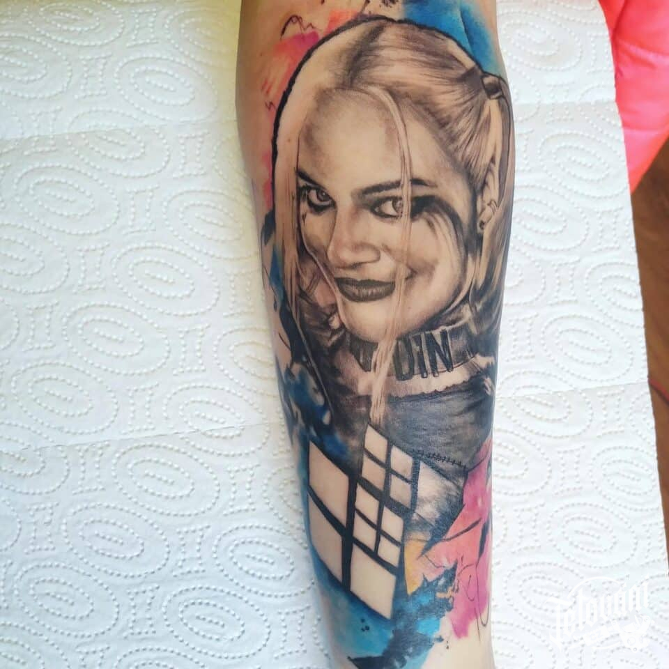 Tetování z filmů a pohádek Harley Quinn na předloktí