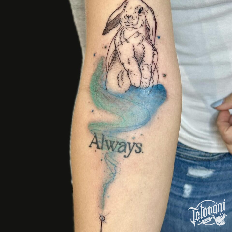 Tetování z filmů a pohádek Harry Potter, nápis na předloktí
