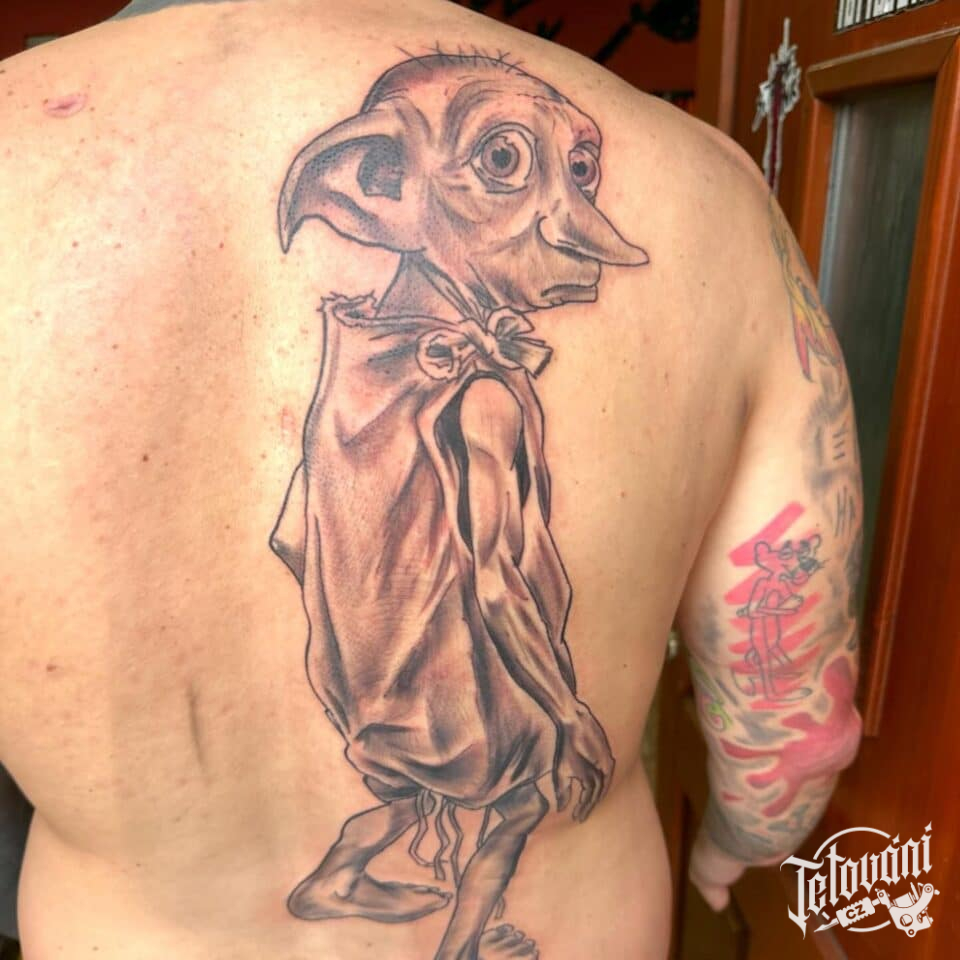 Tetování z filmů a pohádek Harry Potter, postavička Dobby na záda