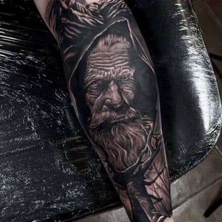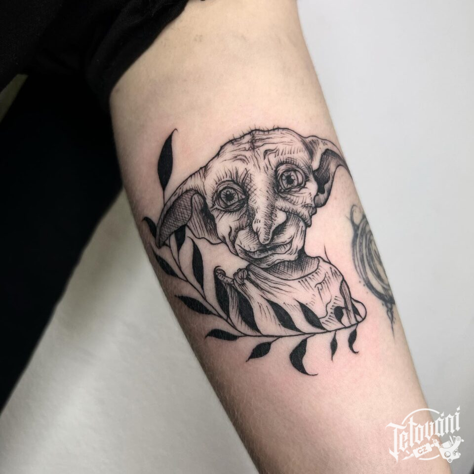 Tetování z filmů a pohádek Harry Potter postavička Tobbi a větvička na paži