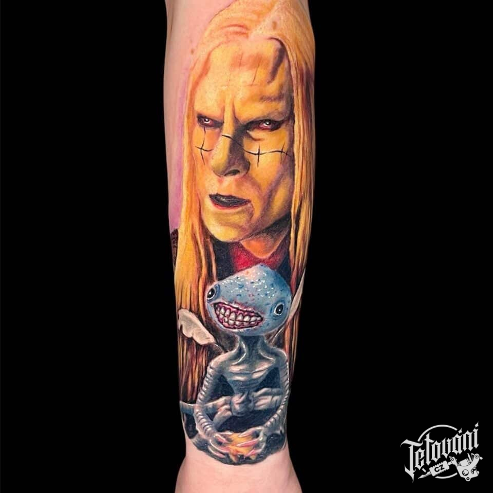 Tetování z filmů a pohádek Hellboy, postavička, portrét na předloktí