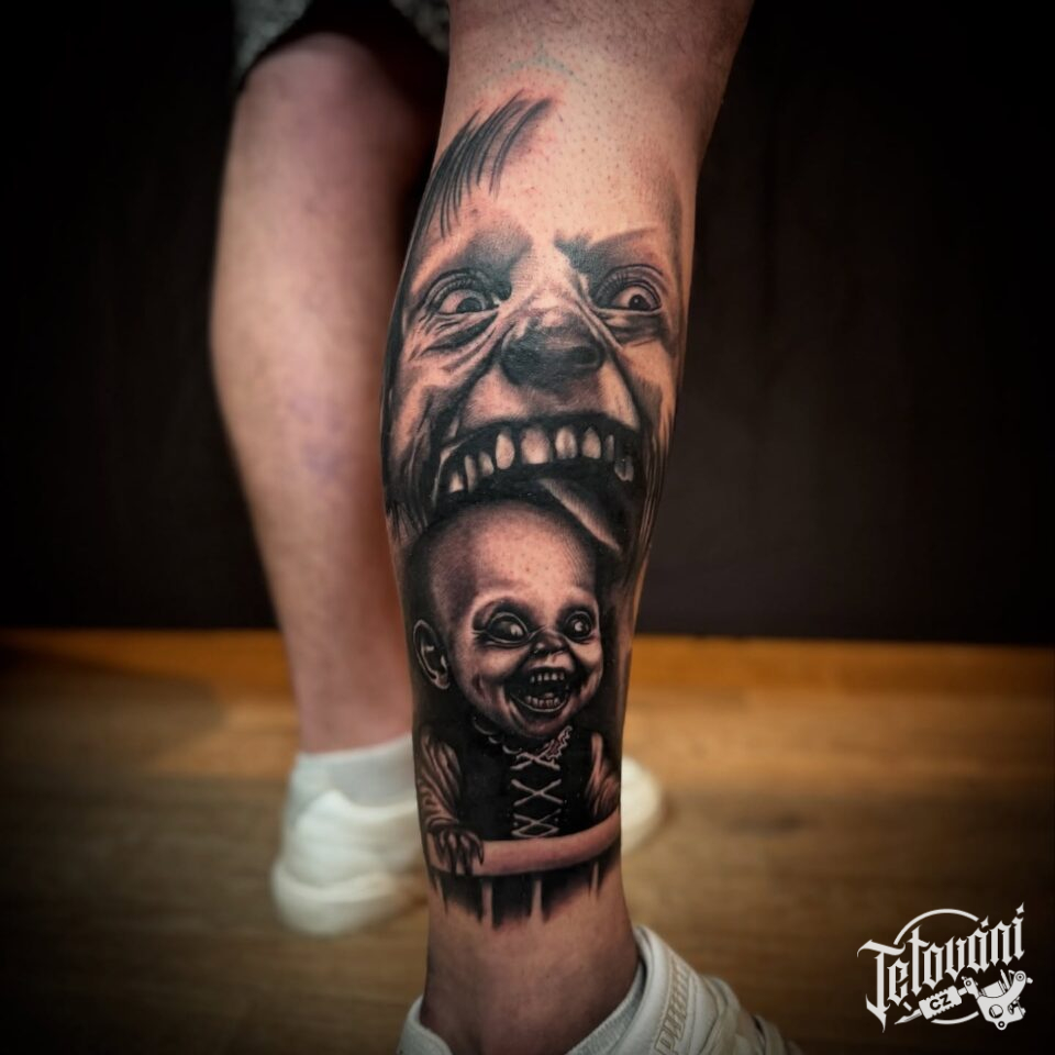 Tetování z filmů a pohádek, horrorové portréty na lýtku