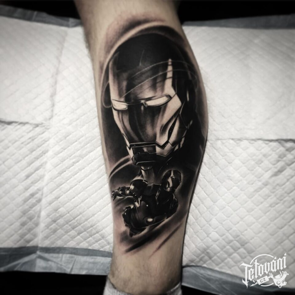 Tetování z filmů a pohádek Iron Man na lýtko