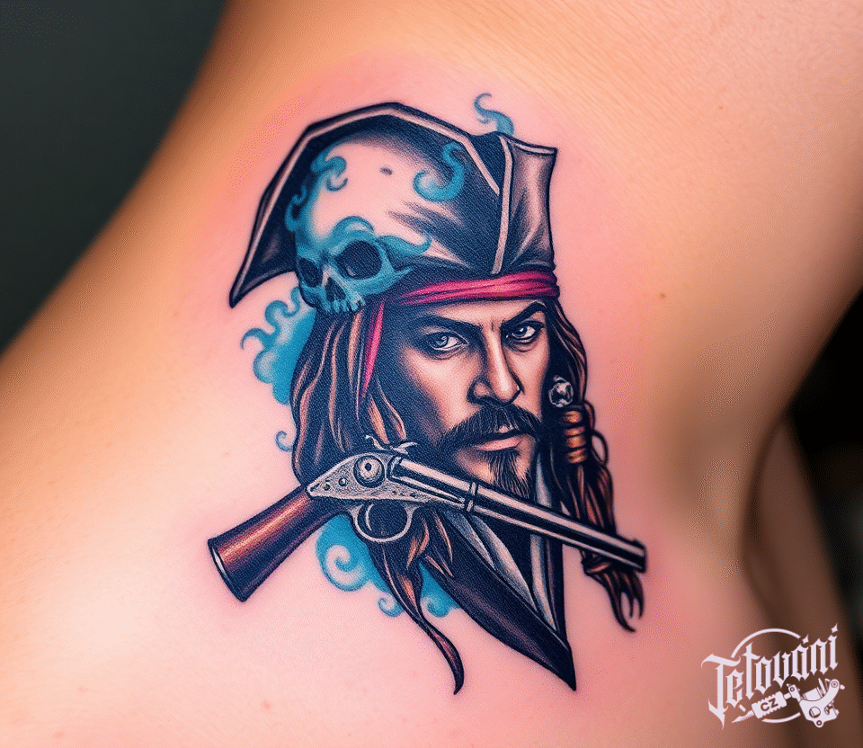 Tetování z filmů a pohádek, Jack Sparrow s lebkou a pistolí na krku