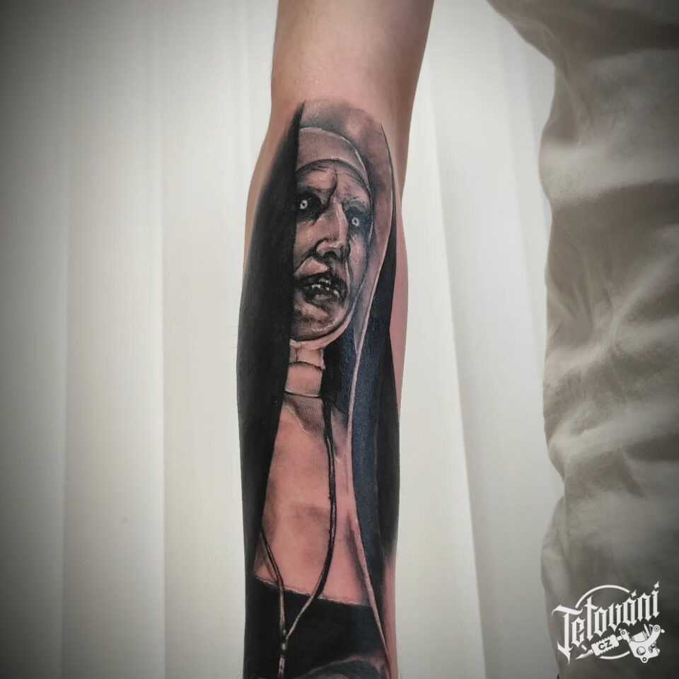 Tetování jeptiška z filmů a pohádek V zajetí démonů na předloktí